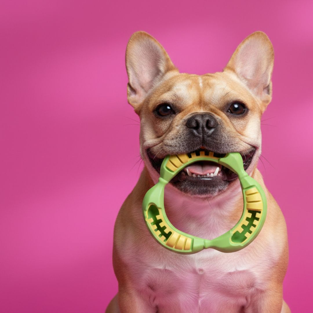 Door de vorm van onze speeltjes worden etensresten en tandplak verwijderd in het gebit.